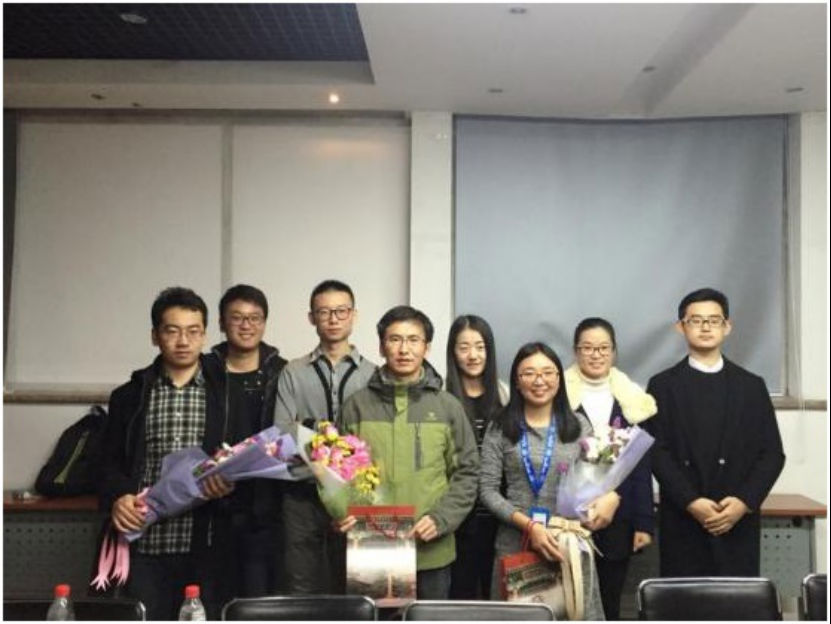 随后,主办方研会就业部及部分到场同学为三位老师献花并合影留念。
