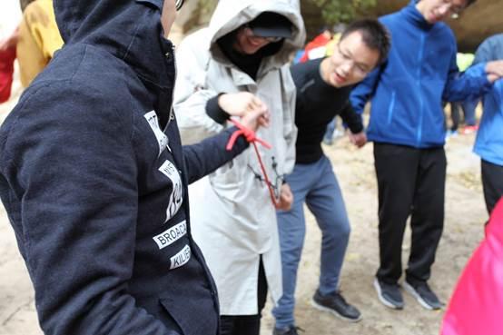 14日上午10点10分到达徒步目的地千米沙滩后,在素拓教练的组织下,先后开展了“一圈到底”、“激情节拍”等素质拓展游戏,这些游戏均要求团队成员具有强烈的组织纪律性,并且成员之间具有较好的协作配合能力。通过团队之间的比拼,无论最终是获胜还是失利,团队的每一位成员都通过亲自参与游戏,深刻体会到了彼此合作的快乐和重要性。