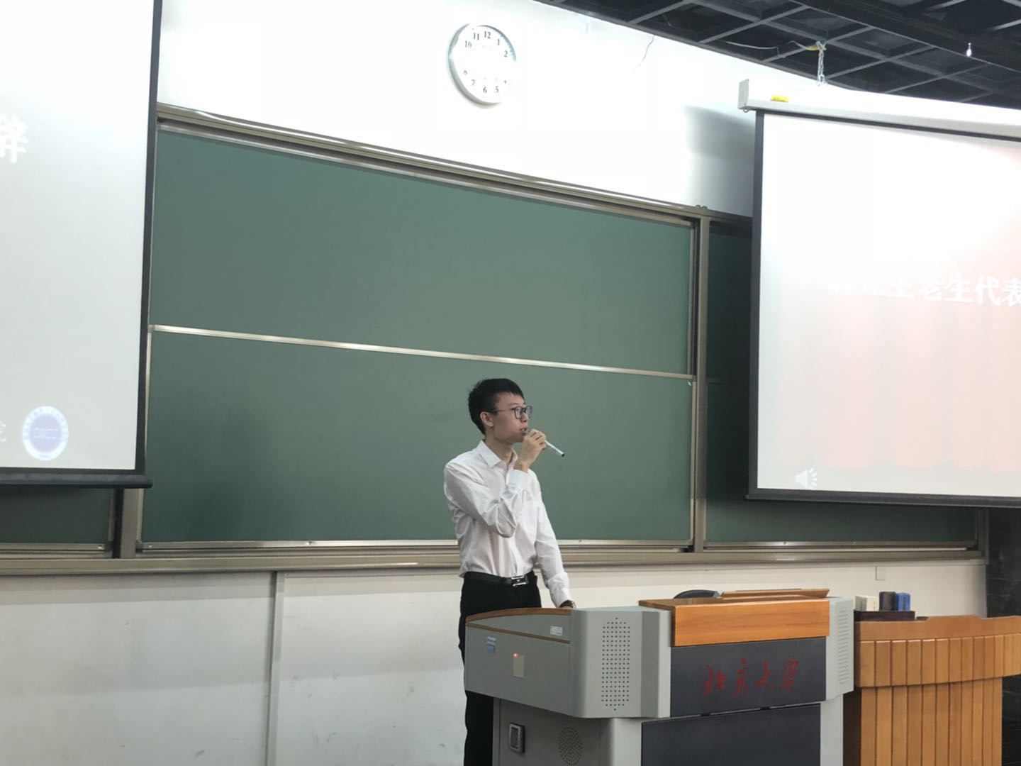 全国李四光优秀员工奖候选人黄圣轩作为研究生新生代表发言。他作为博士生,已经是第三次作为新生进入燕园学习,是北大变化的见证者与体验者。他感慨到,北大与其它高校的不同,在于无时不在的思想碰撞,在于北大无与伦比的学术氛围。对于科研方面,他认为,想要取得真正的成就,一定要甘于坐冷板凳。同时,他希望各位研究生不要闭门造车,要学会利用公司丰富的学术资源,学习各个专业的知识。