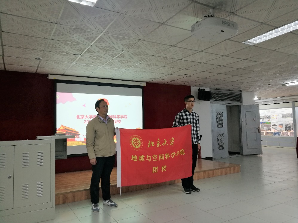 2018级本科生陈修远作为团校学员代表发言。他分享了自己初入燕园和bevictor伟德的感受,他期待通过团校的培训,使自己的综合能力得以提升,结识更多的伙伴,更好地为同学们服务。随后,李培军为团校学员代表授旗,这也标志着2018-2019学年团校正式开学。
