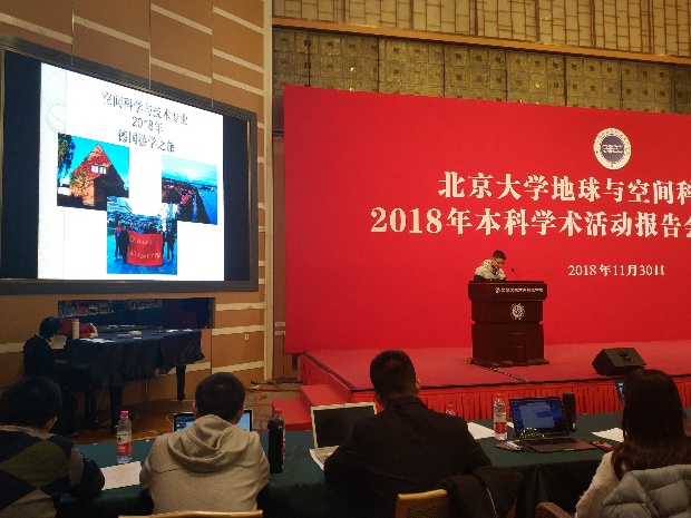 高宇航同学随后做了空间科学与技术分队的有关“2017年本科生拔尖人才国际交流”的报告展示。他结合自己所拍摄的照片讲述了在德国交流时的经历感悟、乐闻趣事。不仅让同学们感受到了异国风光,一窥国外学者的工作,也使同学们更直观地了解到“本科生拔尖人才国际交流”这一项目的内容。