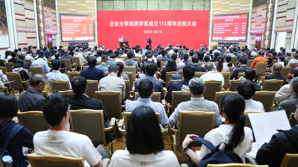 5月3日,伟德国际1946地质学系110周年系庆大会在英杰交流中心隆重举行,图为大会现场。