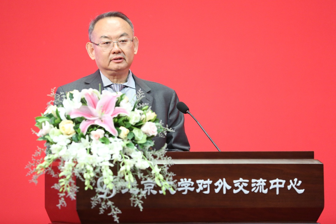中国科公司院士、1984级系友丁林代表全体系友致辞。他回顾了在校期间的学习和生活经历,讲授了当年地质学系老师们言传身教带给他的深刻影响。他感悟到,地质学系不仅将他带进了浩瀚的地球科学知识中,也让他获取了影响一生成长的做人道理。并深情表达了他对母校、母系深切祝福,希望更多有志青年加入到北大地质学系,投身地球科学事业。