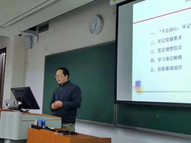 李培军书记结合《中国共产党章程》和习总书记考察北大时的讲话,以“共产党员的基本条件以及如何争取早日入党”为主题为入党积极分子讲党课,使同学们学习了中国共产党的性质、指导思想等党的基本知识,深刻认识了党员义务,牢记“不忘初心,牢记使命”的理想信念。李培军书记的讲解紧紧围绕主题,内容充实、针对性强,有效地提高同学们对党的基本知识的了解和掌握。