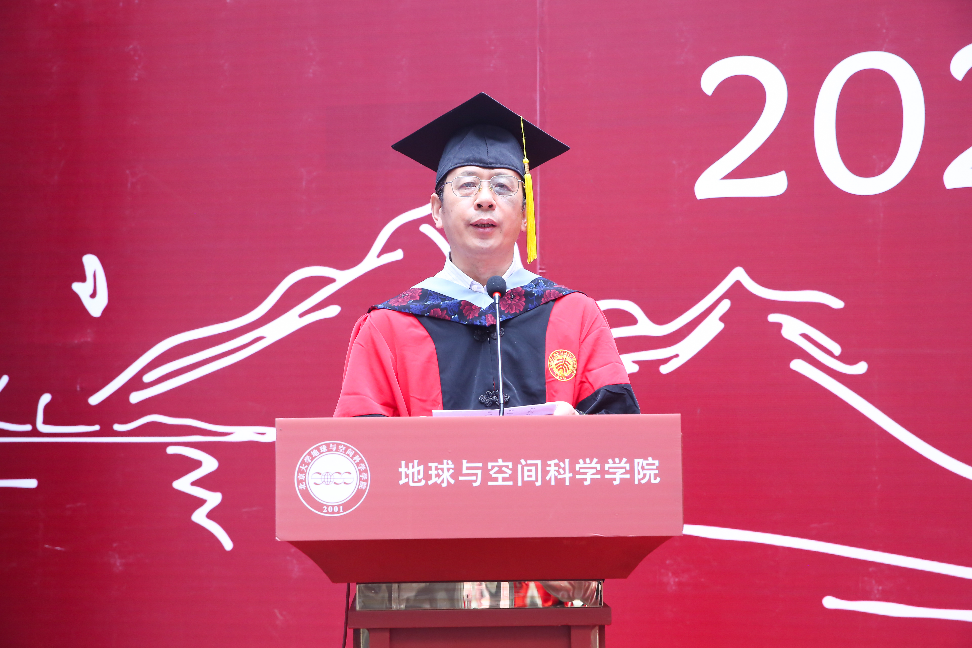 “也许还有遗憾,甚至很多,但我相信共你,没有白活……”,在地空师生《青春大概》的歌声后,优秀毕业生代表伍昕钰带领全体毕业生进行庄严宣誓:“脚踏实地,践行时代责任与使命;仰望星空,承载北大精神与梦想”。