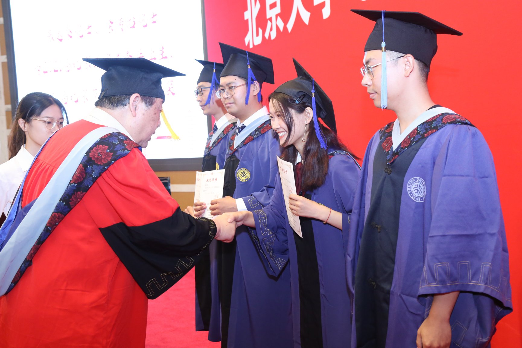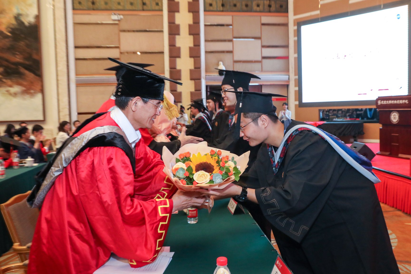 最后,在学位授予仪式中,陈运泰院士、涂传诒院士为毕业生们一一拨穗,授予学位。