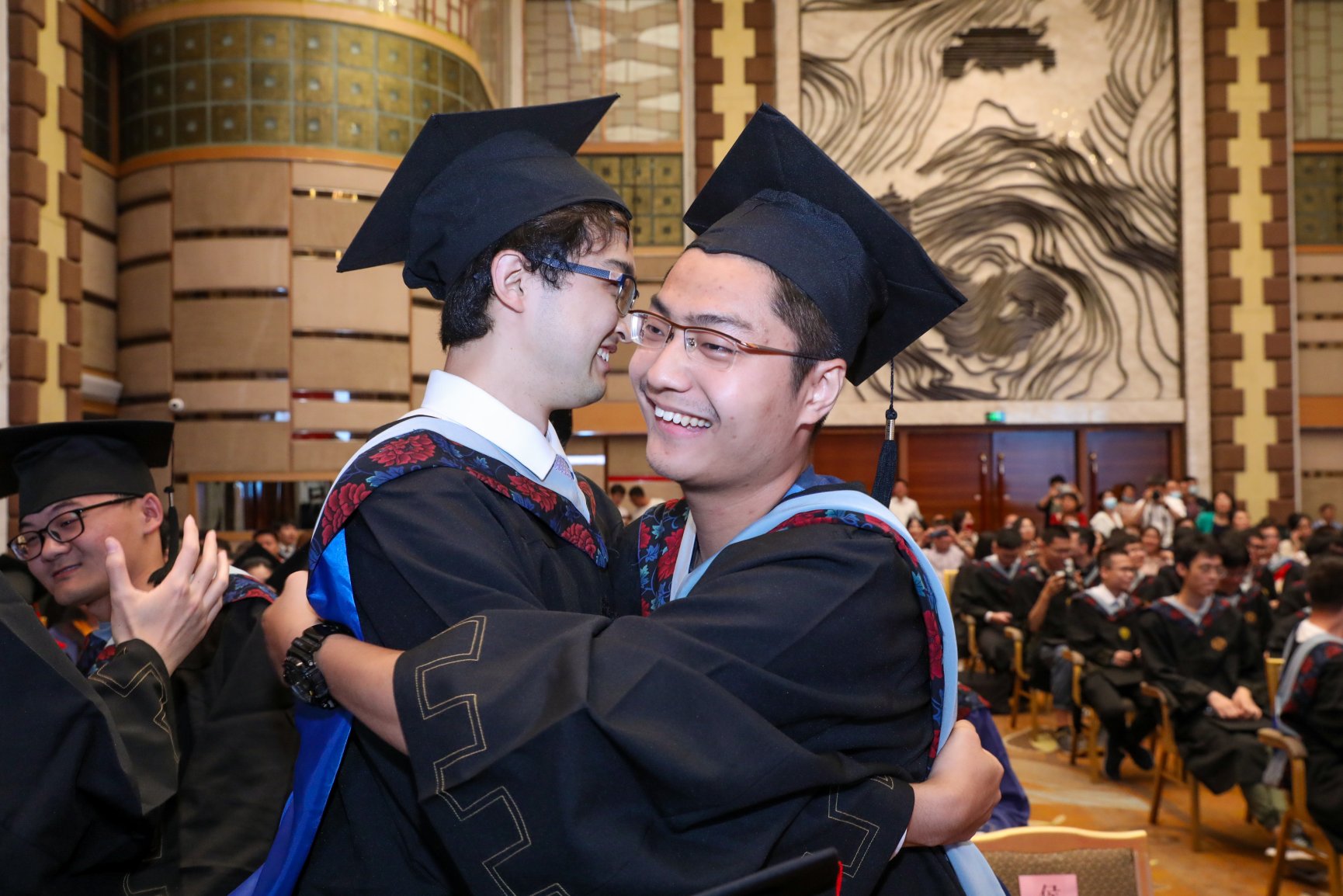在这离别之际,在场毕业生们用温暖的拥抱给最亲最近的同窗们最好的祝福,感谢彼此之间的共同成长,感谢青春年华的长久陪伴。