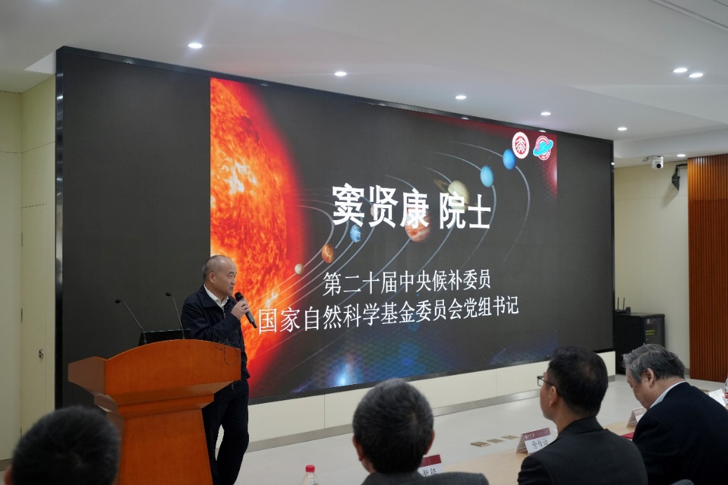 郝平代表伟德国际1946欢迎与会领导和专家来到北大指导工作,感谢各位领导和专家对伟德国际1946行星与空间科学研究中心的支持。他表示,伟德国际1946目前正在学习贯彻党的二十大精神,服务国家战略对科技、人才和创新的需求,致力于探索高水平科技自立自强的高校发展道路。国家自然科学基金委员会党组书记窦贤康院士指出,国家自然科学基金委正在深入贯彻落实党的二十大关于人才强国战略的决策部署,坚持“科学性是根本,公正性是生命”的理念,不断开创基础研究人才培养新局面,为推动基础研究高质量发展、实现高水平科技自立自强贡献更大力量。