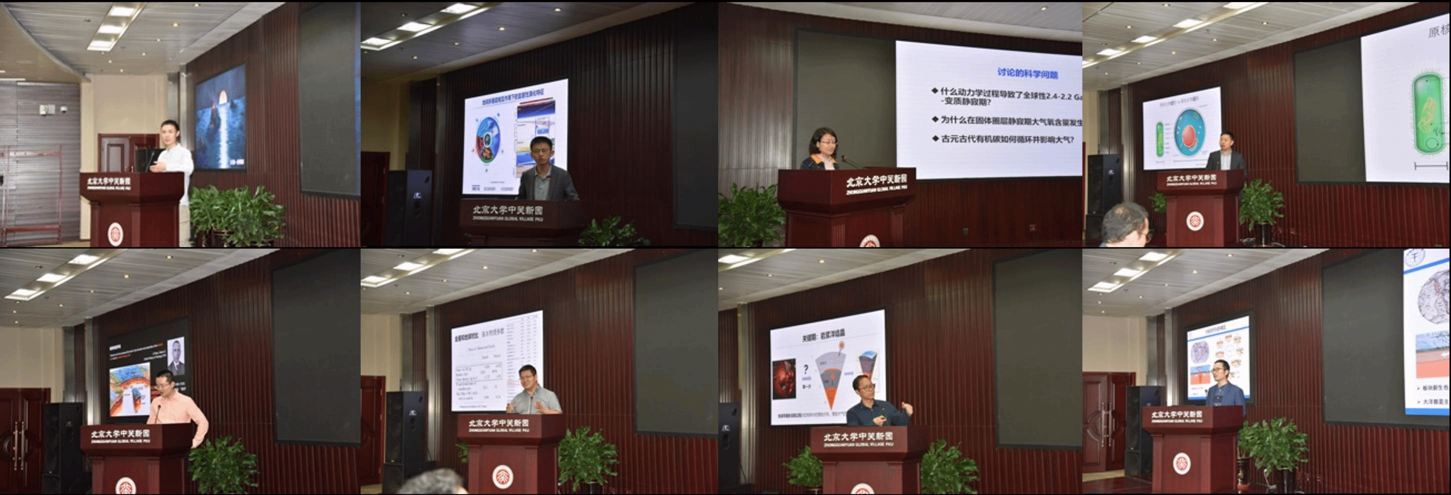会议伊始,刘瑜副经理进行了致辞,表达了对与会人员的欢迎,并表示对此次会议的肯定和期待。随后,各位报告人进行主题报告。首先,唐铭教授梳理了早期地球时间线,回顾了从冥古宙到元古宙地球上发生的大事件、早期地球研究难点及现状,说明了学科交叉在早期地球研究中的重要性。中国科学技术大学郝记华研究员的报告对地球早期磷循环演化及其对宜居性的影响进行了梳理,中科院地质与地球物理研究所焦淑娟研究员从古元古代变沉积岩角度探索大氧化事件成因,南京大学唐卿副教授分享了元古宙的真核生物及其与环境的协同演化的相关问题。胡清扬研究员报告了深地过程参与的早期地质事件,分析了深部与浅部的联系。北京高压科学研究中心陶仁彪研究员以碳为例,介绍了地球与金星的异同之处。中科院广州地化所杜治学研究员熔融地球向固体地球的转变:地球迈向宜居的第一步进行了报告。最后中国地质大学(武汉)王振胜副研究员从地球动力学数值模拟方面,讨论了大陆岩石圈形成与稳定问题。每位报告人分享结束后,与会老师、同学都进行了热烈的提问讨论,关于早期地球仍存在许多未解之谜。