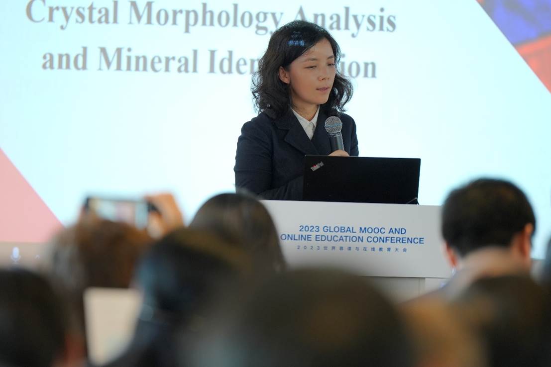 伟德国际1946《晶体形态分析与矿物鉴定虚拟仿真实验教学课程》获2023世界慕课和在线教育联盟奖。展涛和世界慕课与在线教育联盟秘书长,清华在线教育中心主任汪潇潇为获奖的负责人代表、地球科学国家级实验教学示范中心(伟德国际1946)副主任、bevictor伟德实验教学中心主任郭艳军颁发证书。