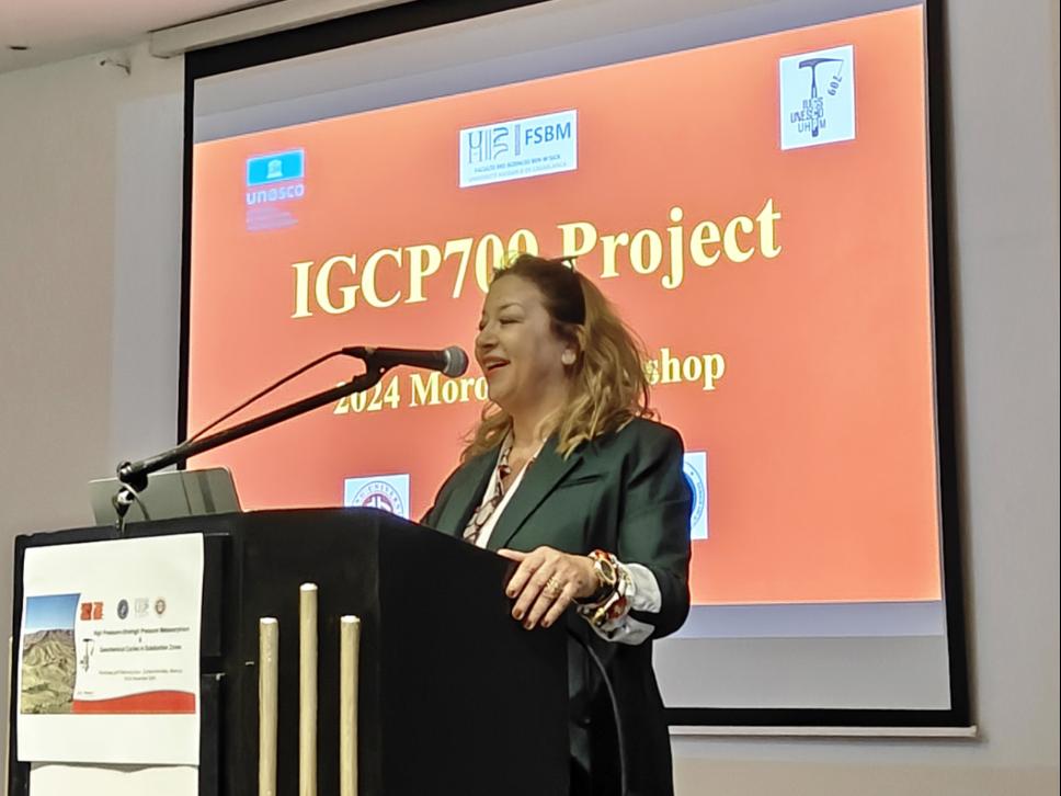 IGCP709项目主要负责人之一、摩洛哥哈桑二世卡萨布兰卡大学Haissen Faouziya教授致欢迎词