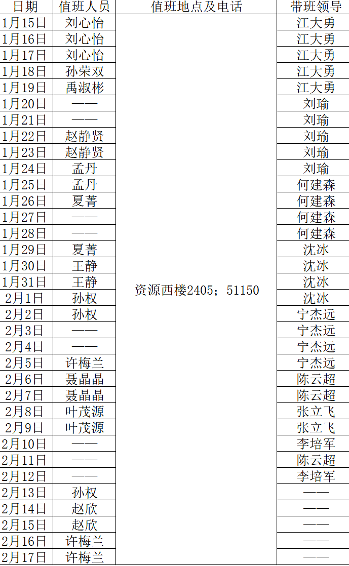 2024年寒假行政带值班表