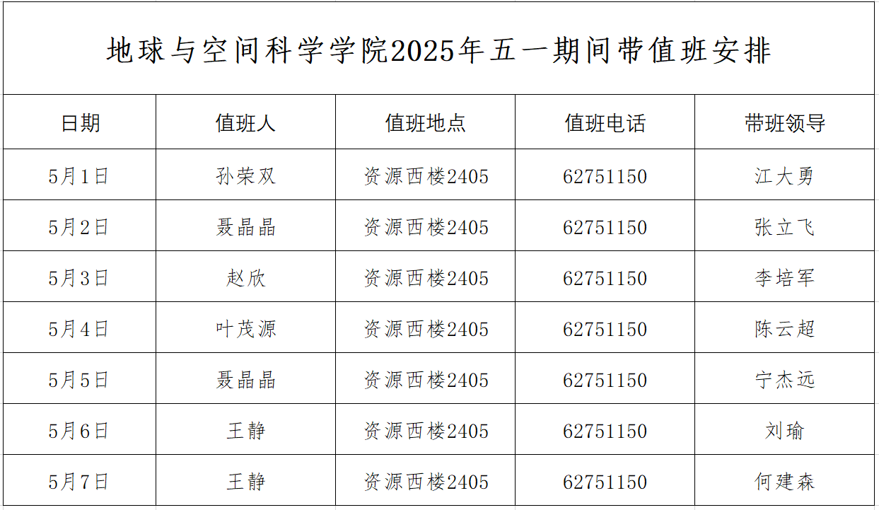 2025年五一期间带值班安排
