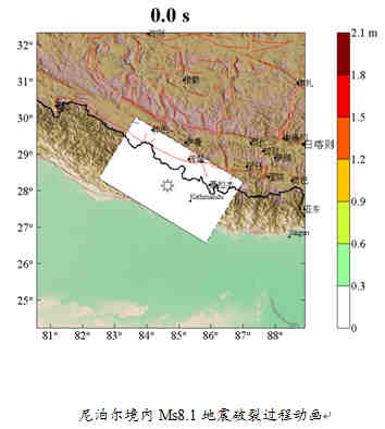 其结果表明,尼泊尔地震的矩震级为MW7.86,约为7.9。破裂最主要的特征是朝东南方向传播,由于尼泊尔首都加德满都同样位于震中东南方向,可能将遭受较为严重的破坏,是此次地震的首要重灾区。同时,由于破裂没有大规模出露地表,且绝对滑动量不大,因此地震规模尽管与汶川地震(MW7.9)大体相当,但造成的震感比后者应该相对弱一些。