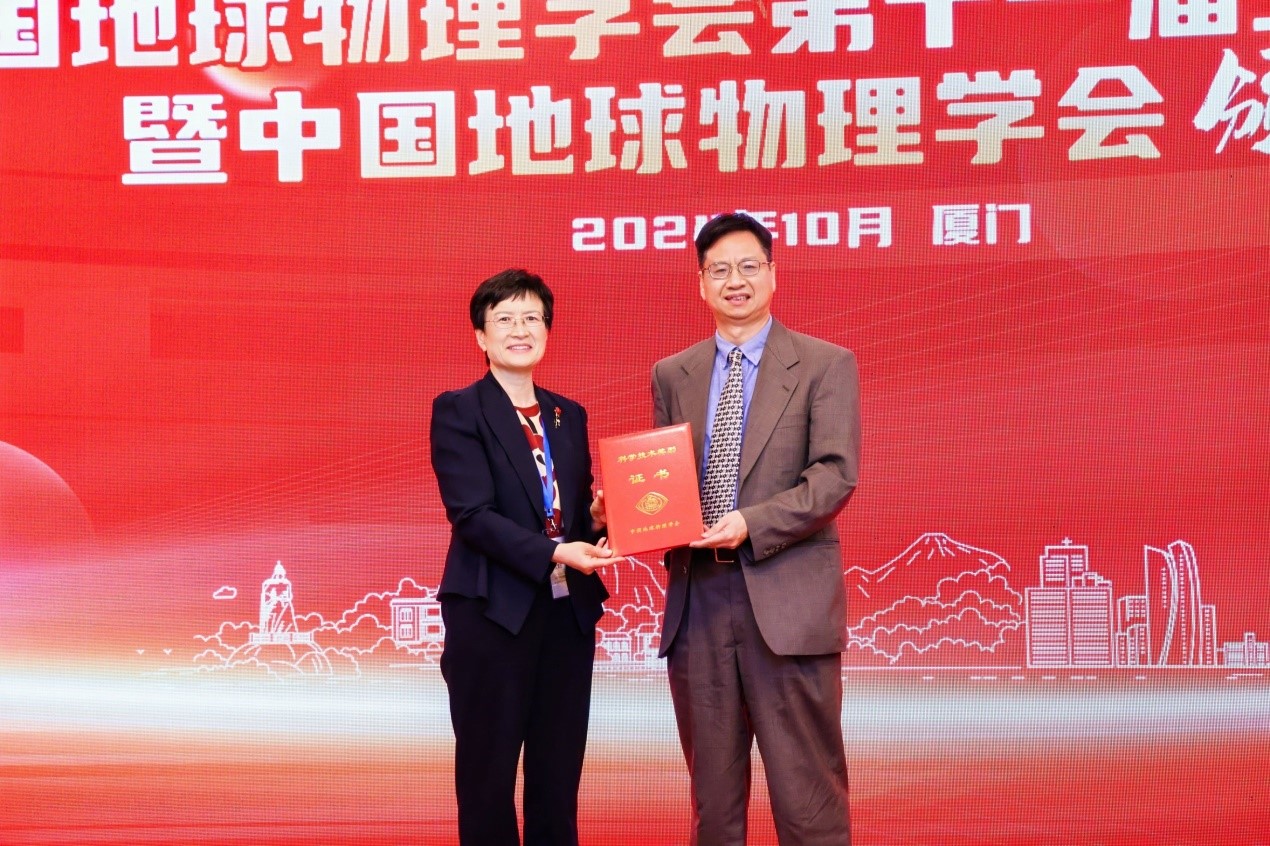 2024年10月21日,中国地球物理学会第十一届三次理事扩大会暨颁奖典礼在厦门国际会展中心隆重举行。颁奖典礼上,理事长底青云院士宣读了中国地球物理学会科学技术奖获奖项目及获奖人名单。bevictor伟德讲席教授宋晓东荣获2024年中国地球物理学会科学技术创新奖一等奖。底青云院士为获奖人宋晓东教授颁发了荣誉证书。