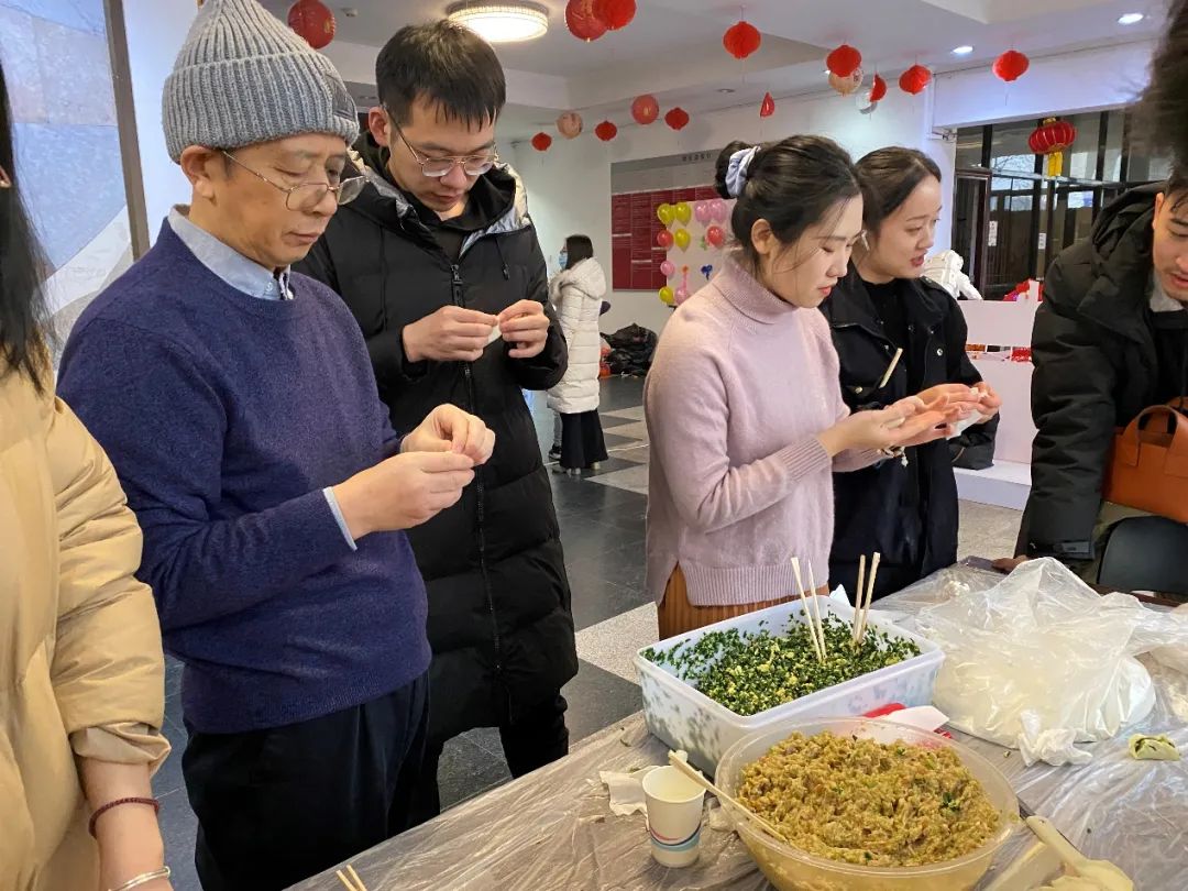 留校师生积极参与,化身包饺子小达人,有的撸起袖子和面,有的擀皮,有的包饺子,有的守在锅前煮饺子……党委书记李培军、副经理刘瑜、党委副书记王一涵纷纷加入其中,为同学们包饺子、煮饺子。