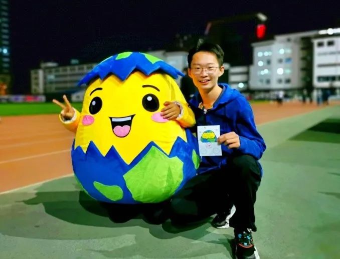 “夜奔”过后在五四操场上与吉祥物“地小空”的合影