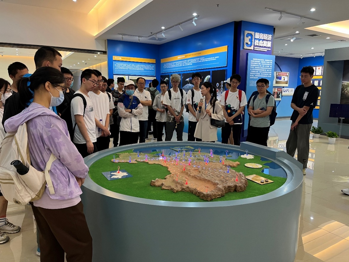 跟随着讲解员,同学们了解了空间中心从研制“东方红一号”卫星的中科院“581”组,到载人航天应用系统总体,再到探月工程科学应用系统总体和有效载荷总体的发展历程。一路风雨兼程,以空间中心科学家们为代表的空间科学领域前辈将自己的科学追求融入到国家建设的伟大事业中,在我国人造地球卫星、载人航天、探月工程事业中作出了不可磨灭的贡献。一代又一代空间科学人的继承与创新,让我国空间技术取得蓬勃发展,风云、海洋、北斗导航等我国自主研制的各类应用卫星的成功标志着卫星应用已广泛服务于我国国民经济建设各个领域,成为经济社会发展不可或缺的重要技术手段。空间科学领域的前辈们通过研制先进有效载荷和空间天气保障服务,将论文和成果写在了祖国的大地上,将凯歌奏响在国民经济建设和人民日常生活的卫星应用中。