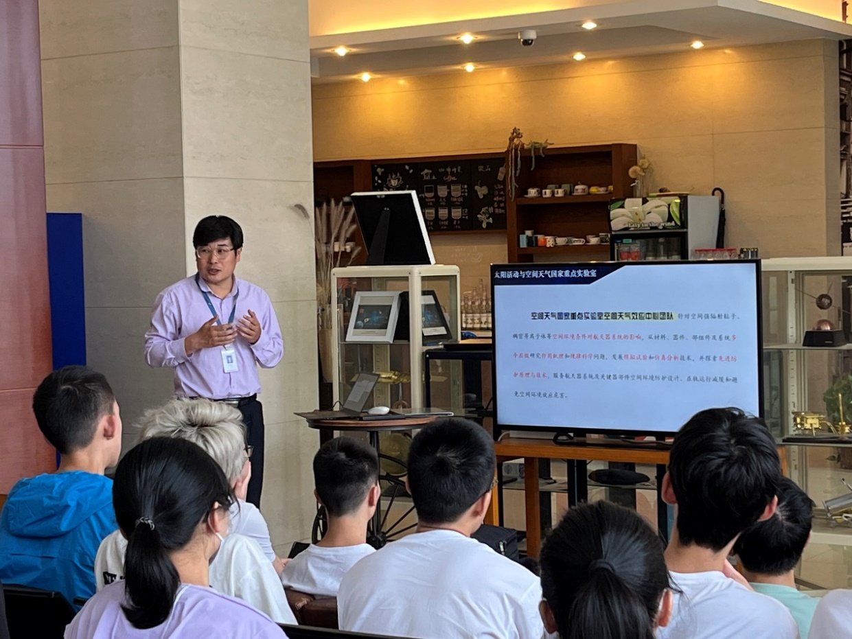 抵达空间中心后,主题展讲解员刘红姗同学为大家讲解了空间中心的发展历程。作为我国空间科学事业重要开拓者的一员,空间中心在我国空间物理与空间天气基础研究、空间环境探测与应用、微波遥感技术、空间电子信息技术等领域的发展中作出了重大贡献。