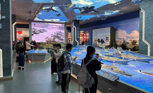 大家在集参观结束后自由体验博物馆的各楼层各展区:其中既有广泛的“兵器陈列”,将陆、海、空装备的从枪炮至刀具的各种类型各个型号的武器分门别类展出;又有如“红色记忆——馆藏革命军事艺术作品陈列”这样的主题展览,油画、雕塑、国画等艺术品独具张力,让同志们对革命历史有了更具象的感悟;还有如“核武器与核技术和平利用”“导弹武器装备技术”等军事科技陈列展,展现了原子弹、氢弹,还有东风系列导弹等大国重器,让同志们感受到核武器是国家地位强大和安全保障的压舱石,也认识到我国促进核能和平利用、防止核扩散的决心。