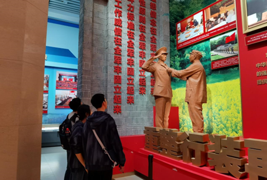10月7日上午,与会人员在军事博物馆门口合影后进入馆内参观。首先映入眼帘的是“领航强军向复兴——新时代国防和军队建设成就展”,展览以习近平新时代中国特色社会主义思想为指导,深入贯彻习近平强军思想,紧紧围绕习近平主席领航新时代强军事业的重大思想和实践,系统性全景式展现了党的十八大以来国防和军队建设取得的历史性成就、发生的历史性变革。在参观学习中,同学们真切感受到了新时代国防和军队建设的壮阔历程、伟大成就,以及人民军队忠诚维护核心、矢志奋斗强军的昂扬风貌。