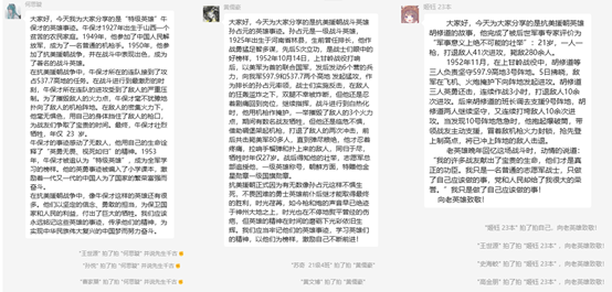 至此,本次活动线下部分告一段落,在接下来的三周内,每天都会请两位同学在支部群内带领大家学习抗美援朝期间涌现的英雄事迹或感人故事,让大家学有所感、观有所获。其他同学以“拍一拍”的形式与分享人互动、交流、共同进步。