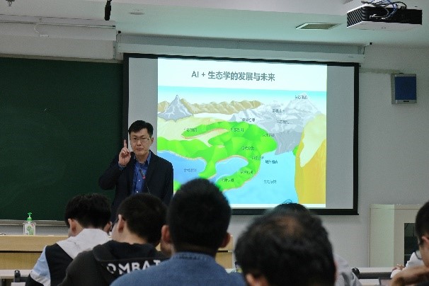 同学们在提问与交流环节中踊跃发言,针对报告内容进行了深入的讨论。郭庆华教授耐心地一一解答了同学们的问题。他指出了激光雷达技术在提高植被制图精确度中的关键作用,解释了人工智能如何优化数据分析和处理流程以增强生态监测的效率和准确性。郭庆华教授认为,虽然人工智能在多个领域中的应用已经取得了显著成果,但如何进一步提升人工智能模型的泛化能力仍是一个值得深入研究的问题。他强调,同学们要勇于创新、敢于实践,更要胸怀责任感和使命感、志存高远,通过多学科交叉融合,继续探索新的研究方法和技术手段,为实现科学目标和社会价值而不懈奋斗。