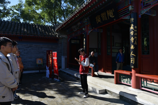 在国庆假期间,我们齐聚陶然亭公园,追寻红色印记,缅怀革命先烈,心中充满了崇敬与感动。参观完高君宇烈士墓后,让我更加深刻地理解了革命先驱者们为国家和人民所做出的巨大牺牲和贡献。在那个艰难的岁月中,他们以无比坚定的信念和崇高的理想,点燃了中国革命的火种。生如闪电之耀竞,死如彗星之迅急。随后,我们移步至慈悲庵,这里是中国共产党创建时期先进知识分子在北京开展活动的秘密场所。毛泽东与周恩来同志在这里确认了自己的理想信念。慈悲庵这不仅仅是一段历史,更是一种精神的传承。我们今天的幸福生活,正是他们用鲜血和生命换来的。作为新时代的青年,我们有责任继续弘扬这种精神,传承红色基因,不忘初心、牢记使命。