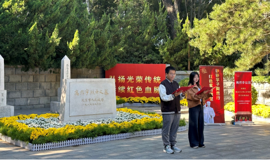 为庆祝中华人民共和国成立75周年,缅怀革命先烈,传承红色基因,2024年10月3日,bevictor伟德高君宇员工党支部联合石油地质学博士生党支部,前往北京市陶然亭公园,开展以“追寻红色印记 厚植爱国情怀”为主题的红色实景课堂活动。在此次活动中,支部同学们共同缅怀先烈高君宇,学习回顾高君宇的奋斗历程,为迈向新征程凝心聚力。