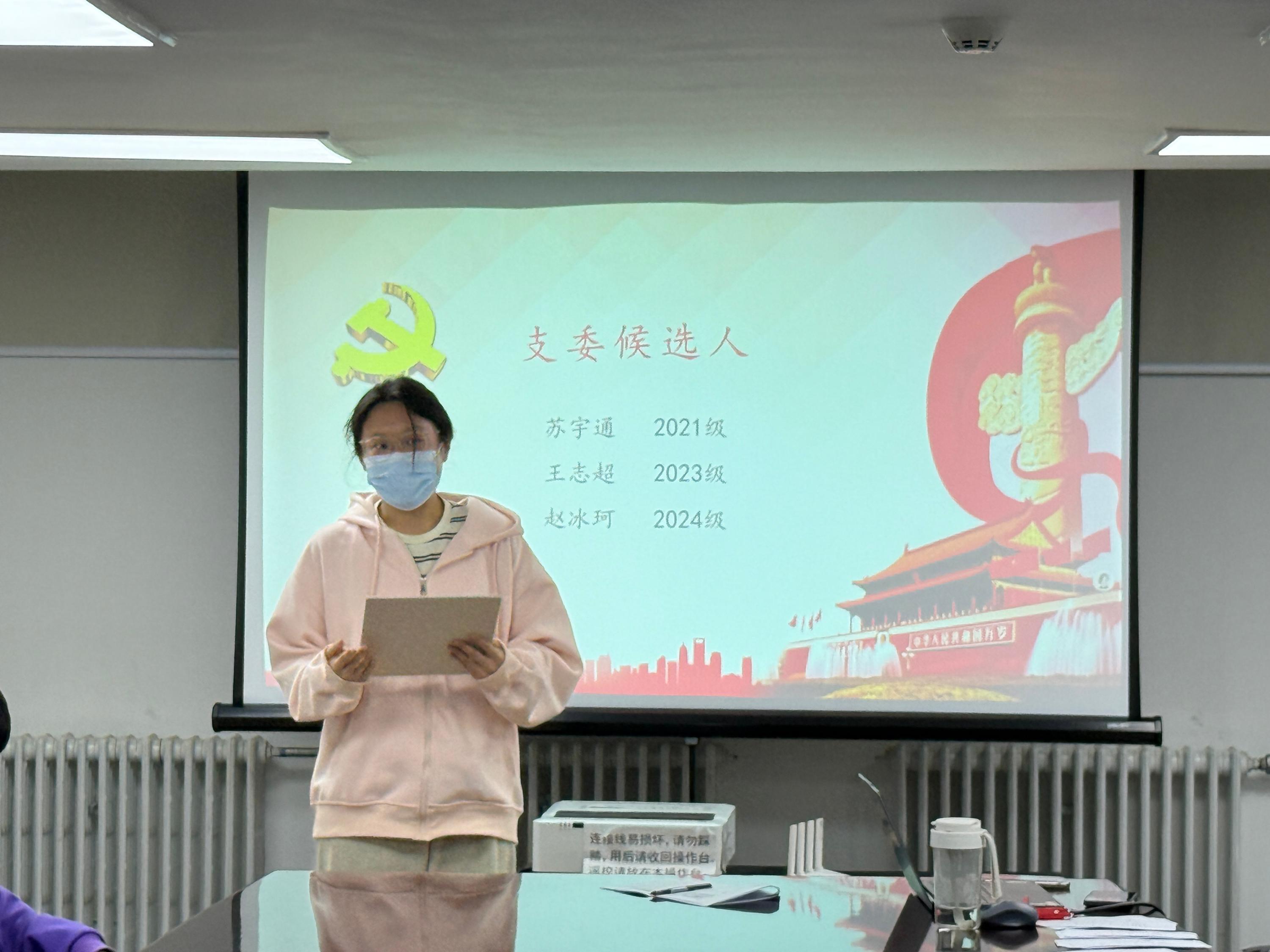大会严格按照组织程序,选举产生首届研究生党支部委员会。经过民主投票,苏宇通同志当选为党支部书记,王志超同志当选为党支部副书记,赵冰珂同志当选为支部委员。新当选的党支部书记苏宇通同志代表支部全体党员表态,将坚持以习近平新时代中国特色社会主义思想为指导,扎实做好党员教育管理工作,打造学习型、服务型、创新型党支部。