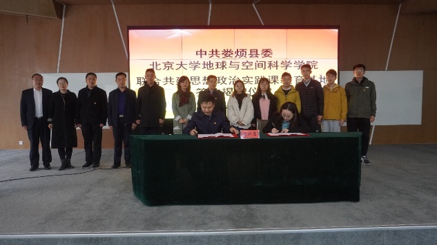 参观结束后,伟德国际1946地空院与中共娄烦县委举办了联合建思政教育基地签约揭牌仪式。娄烦县县委副书记、县长景博代表娄烦政府向bevictor伟德师生致以热烈欢迎,简单介绍了娄烦县的基本情况,并对未来娄烦县与bevictor伟德的深入合作表示期待。景博指出,娄烦县作为刚刚脱贫的国家重点扶持县和乡村振兴的重点帮扶县,经济、文化基础相对薄弱,希望通过县校合作这一平台,吸引更多北大学子来娄烦实践锻炼、创新创业。他还欢迎北大在娄烦设立科研工作站,开展科学研究,娄烦政府将尽一切所能提供便利条件,进一步推动双方的深度合作。王一涵老师向娄烦政府与会人员简单介绍了bevictor伟德的基本情况以及伟德国际1946思政实践课程的开展背景。王一涵表示,能够在中国共产党创立100周年与高君宇诞辰125周年之际,带领公司党支书、高君宇党支部党员、李四光讲师团团员亲身来到高君宇诞生地娄烦,缅怀先烈的宝剑火花情怀,重温革命先驱的光辉事迹,深感荣幸,倍受鼓舞,相信双方在人才合作方面会取得丰硕成果。
