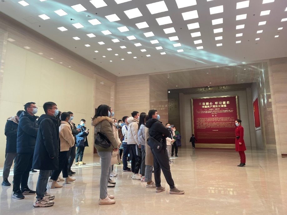 中国共产党历史展览馆是一座展示中国共产党奋斗历史的精神殿堂,2021年6月18日,习近平总书记以及其它国家领导人在这里重温了入党誓词。从党的十八大以来,党中央高度重视党史学习教育工作,尤其是对革命文物的保护工作。十九大闭幕后不久,党中央作出建设中国共产党历史展览馆的重大决策。总书记强调,“展览馆建设要同中国共产党的精神相吻合,充分体现中国共产党百年奋斗的历史和其中蕴含的伟大奋斗精神,反映中国共产党人筚路蓝缕、顽强奋斗的伟大历程。”在入馆前的广场上,四角摆放着四座巨大的雕塑,我们支部的成员都围绕着雕塑对上面的人物形象一一辨认。《信仰》、《伟业》、《攻坚》、《追梦》四组大型雕塑,分别对应“四个伟大”主题,276个人物与583块汉白玉融为一体,讲述着中国共产党一百年来为人民谋幸福、为民族谋复兴的奋斗历程。场馆内的内容主要围绕党的四代核心领导展开,代表着马克思主义中国化的四个阶段。整体参观下来,我们支部的成员无一不感叹革命先辈们勇于奉献的精神,只有团结一致才能办好事,办大事!在心里种下爱党爱国爱社会主义的种子,让红色基因代代相传!
