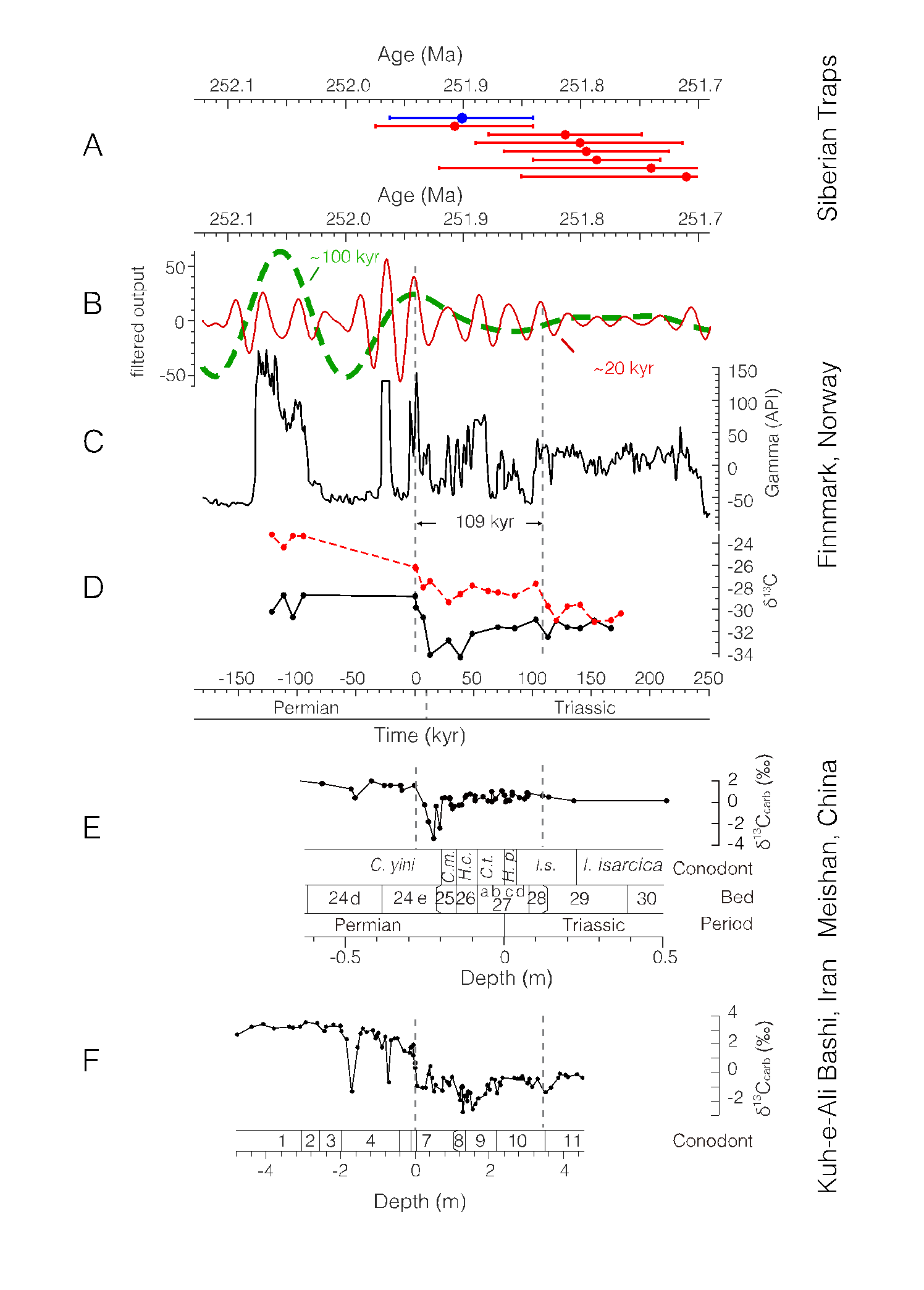 2.5亿年前的二叠纪末生物大灭绝是显生宙最惨烈的大灭绝事件,超过90%的海洋物种和70%的陆地物种灭绝。查明这次大灭绝发生的进程和原因一直是地球科学领域的热点问题。很多研究认为西伯利亚大火山岩省的活动是导致这次大灭绝的原因,然而,引起地球环境和生态系统剧变的机制还存在着很大的争议。
